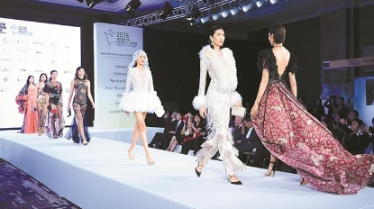 他的第二組造型則主打純粹的搖滾晚裝,尤其是個性十足的尖角翻領(lǐng)晚裝夾克。中國風(fēng)提花夾克背面繡有飛鳥,裝飾著水晶和亮片紋路。夾克上裝點(diǎn)著粉色和青綠色的云朵,綢緞尖角翻領(lǐng)處則點(diǎn)綴著手工縫制的水晶和亮片。不同配色的褲裝兩側(cè)均飾有亮片條紋。其余晚裝夾克也呈現(xiàn)了多元的印花與圖案,包括全身花卉刺繡、幾何圖案等,水晶和天鵝絨飾邊則更顯奢華。