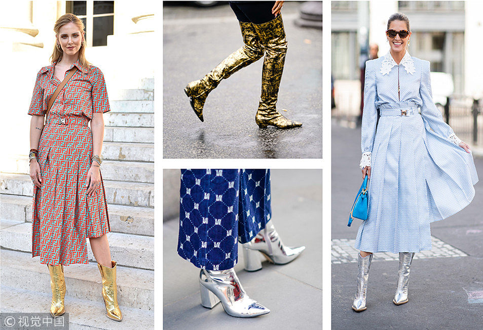 眼看北方氣溫驟降南方也開始降溫,儲(chǔ)存依舊的靴子這時(shí)候不拿出來(lái)穿更待何時(shí)。這一兩年流行的金屬色元素如果放在靴子上也算得上街頭一道靚麗的風(fēng)景線,衣服單調(diào)無(wú)趣不妨在靴子上花點(diǎn)小心思,金屬色戰(zhàn)靴這個(gè)秋季你值得擁有。 (圖片來(lái)源:視覺中國(guó))