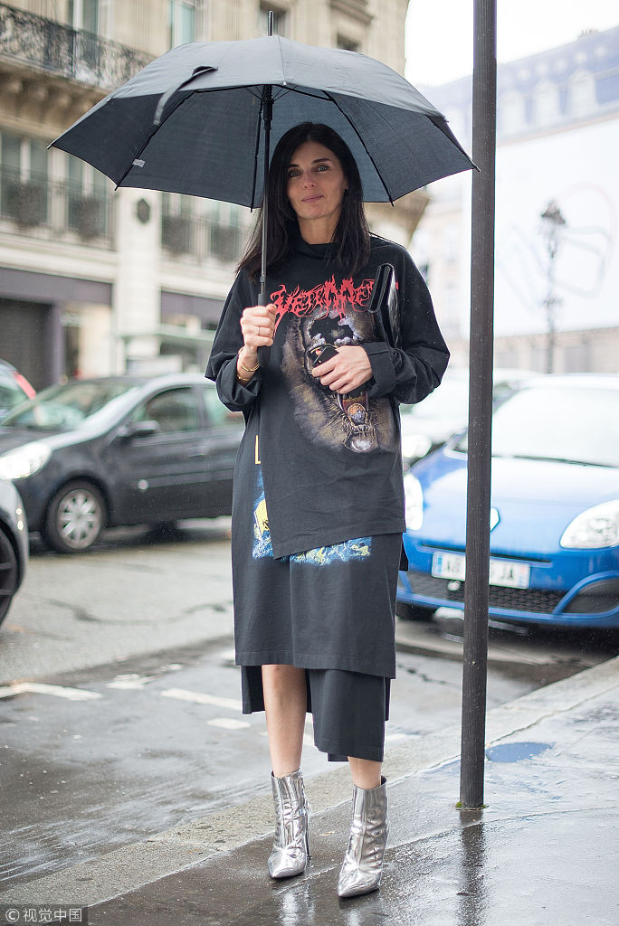 巴黎,7月3日,2016秋冬巴黎高定時(shí)裝周:街頭潮人(7月3日)。 (圖片來(lái)源:視覺中國(guó))