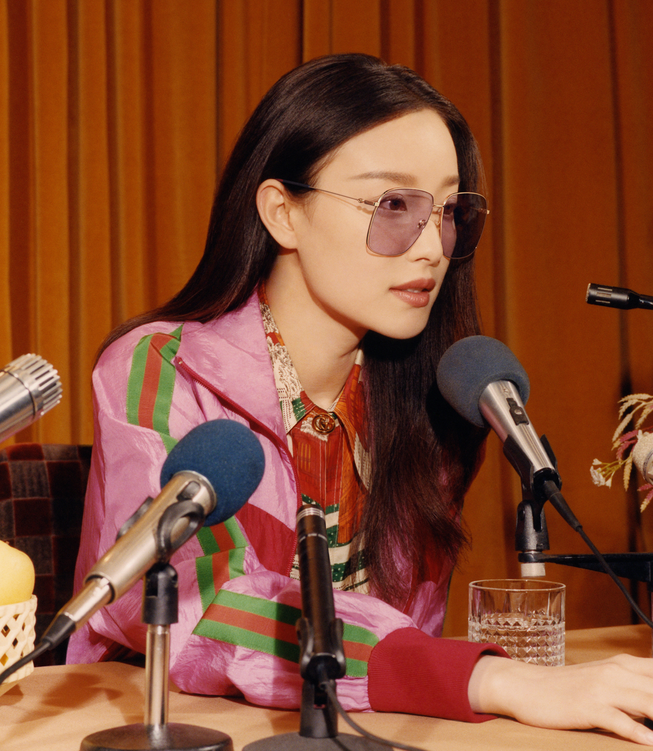 在廣告大片中,倪妮精彩演繹最新眼鏡系列,分別佩戴超大號(hào)光學(xué)眼鏡和淺粉色太陽鏡,展現(xiàn)別具一格的復(fù)古摩登。大黃蜂,雙G標(biāo)識(shí),經(jīng)典條紋點(diǎn)綴于鏡片,鉸鏈及鏡腿,設(shè)計(jì)簡(jiǎn)約精致,極具當(dāng)代風(fēng)格。