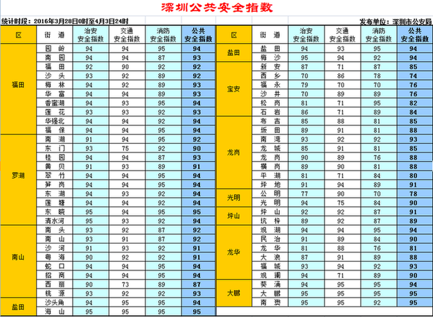 深圳新聞網(wǎng)訊 深圳市公安局圍繞市委市政府“城市管理治理年”工作部署要求,借鑒國內(nèi)其他城市的成功做法,將于4月5日開始,每周通過《深圳特區(qū)報》、《深圳新聞網(wǎng)》、市公安局門戶網(wǎng)站、公安微信、微博,向社會發(fā)布一次深圳公共安全指數(shù),保障市民群眾知情權、監(jiān)督權,引導社會各界廣泛參與 “平安深圳”建設。