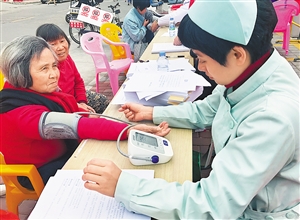 社康中心為老年人免費量血壓。