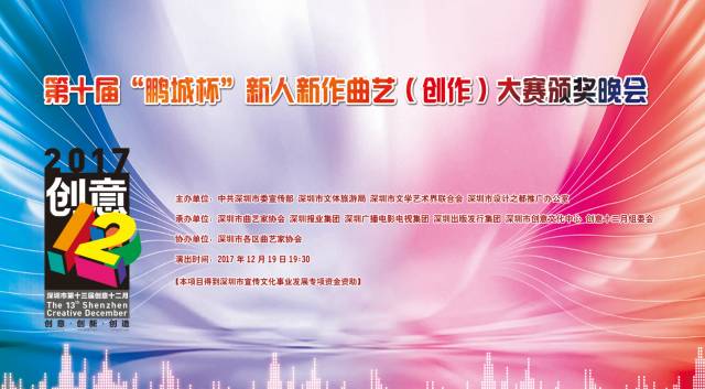 深圳市“鵬城杯”新人新作曲藝大賽作為深圳市文學藝術界聯(lián)合會重點長效品牌活動和“創(chuàng)意十二月”活動之一,得到省、市相關部門領導的重視和大力支持,至今已成功舉辦九屆,大賽分為創(chuàng)作和表演兩種形式輪流舉辦,2017年為創(chuàng)作大賽。