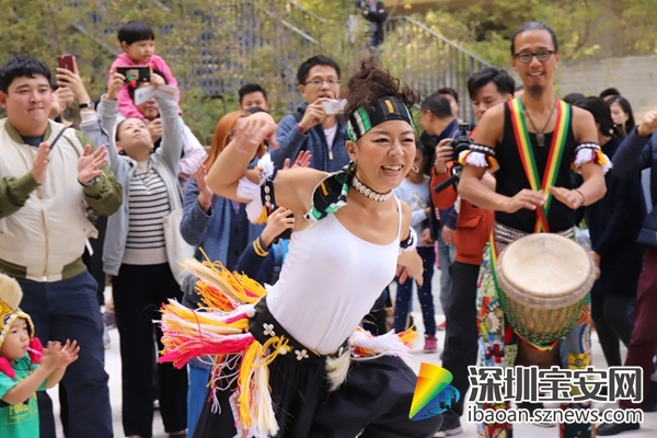 “冬添集市”分為六大板塊,包含:“添趣”“添織”“添耕”“添音”“添物”“添食”,其中最熱鬧的就要數(shù)主舞臺(tái)區(qū)的“添音”展區(qū),JAMMALA樂隊(duì)和非錄音樂俱樂部連續(xù)兩日,準(zhǔn)點(diǎn)帶來(lái)音樂表演。JAMMALA樂隊(duì)是由一群來(lái)自世界各地鼓友們成立的一支非洲傳統(tǒng)打擊樂隊(duì),10日下午3:30,熱情洋溢的鼓聲在泰華梧桐島響起,伴隨著歡快的舞蹈,不少參觀市民加入到游街表演的隊(duì)伍中來(lái),禁不住一起跳起來(lái),唱起來(lái),現(xiàn)場(chǎng)活動(dòng)氣氛熱烈。