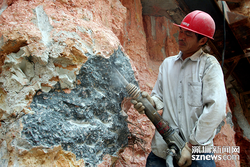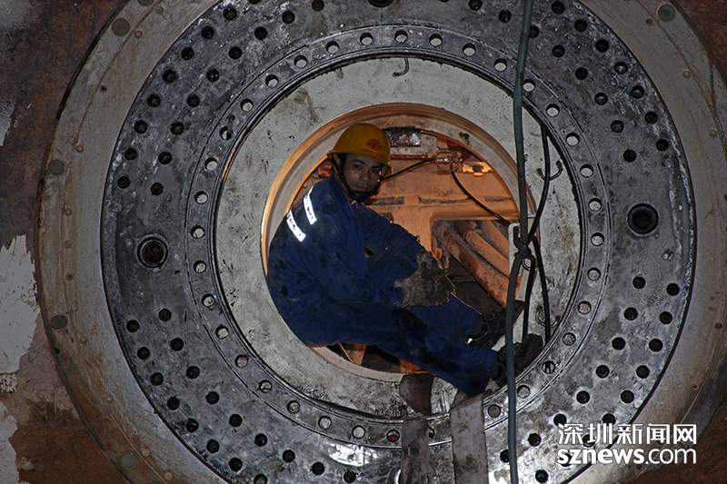 深圳地鐵的建設(shè)離不開無數(shù)人的汗水,圖中建設(shè)工人正在清理盾構(gòu)機(jī)前的淤泥