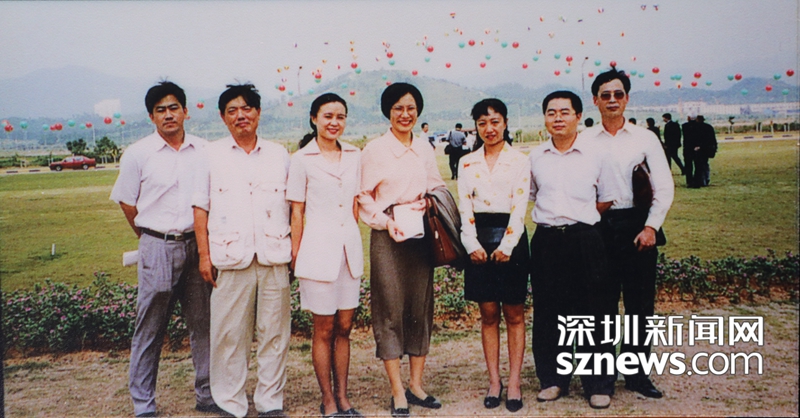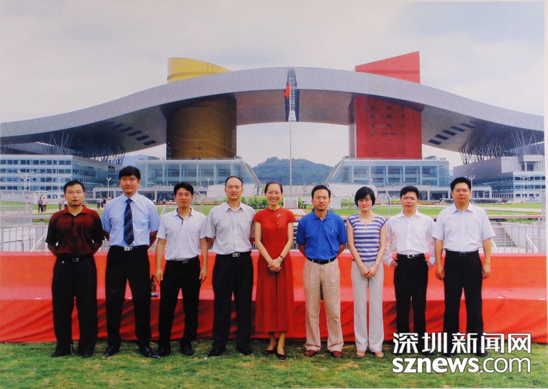 2004年5月,市民中心啟用前,陳一新(左五)與中心區(qū)開發(fā)建設(shè)辦公室的同事合影