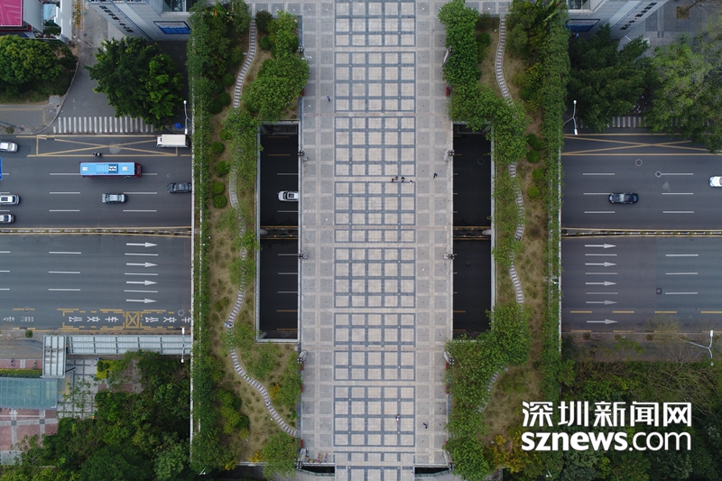 中心城屋頂平臺是深圳福田中心區(qū)空中連廊的一部分