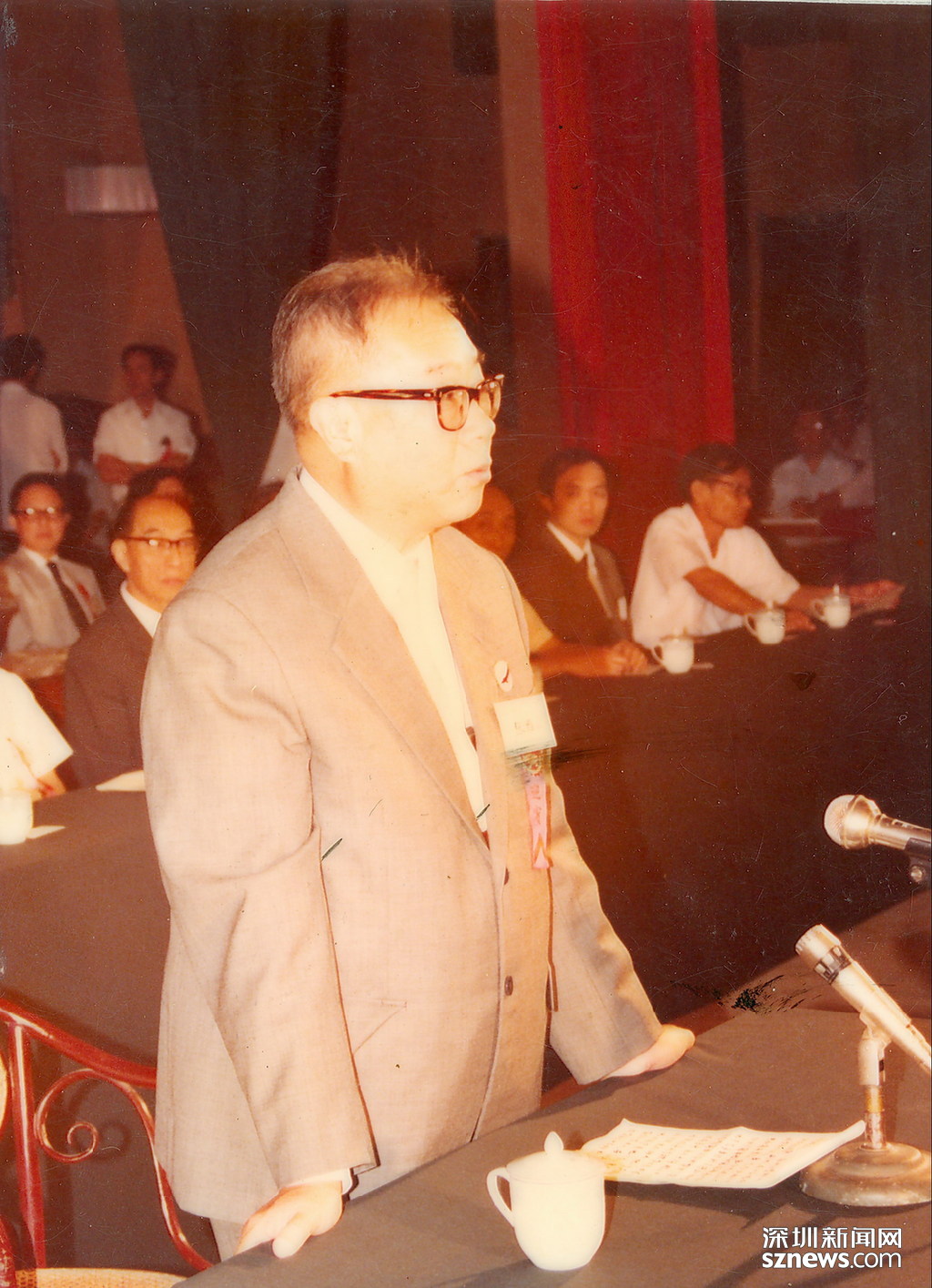 1983年9月27日,深圳大學成立暨首屆開學典禮大會在深圳戲院隆重舉行,首任校長張維在開學典禮上致辭。(資料圖片,由深圳大學提供)