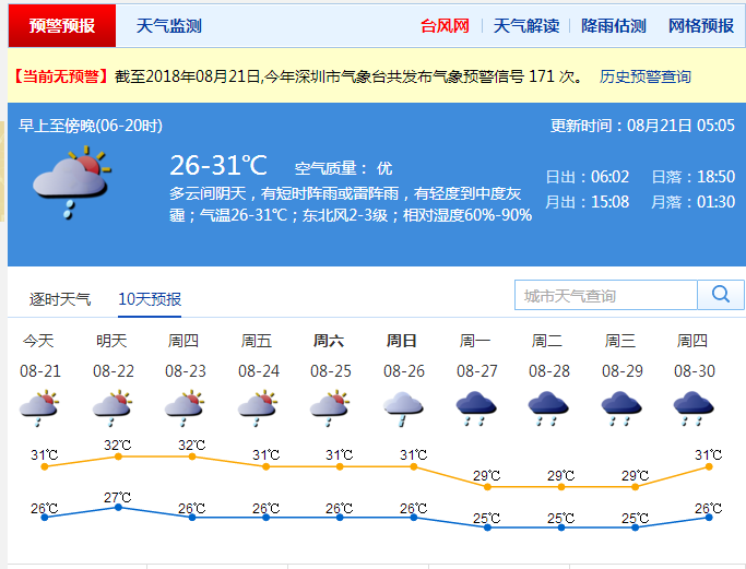 據(jù)深圳氣象臺預計,21日~22日,深圳多云,局地易出現(xiàn)雷陣雨,風力持續(xù)微弱,部分時間還有輕霧或霾,能見度較差。其中,21日早晚濕度大,有輕霧,中午以后濕度有所下降,大部分地區(qū)輕霧會轉成輕度灰霾。