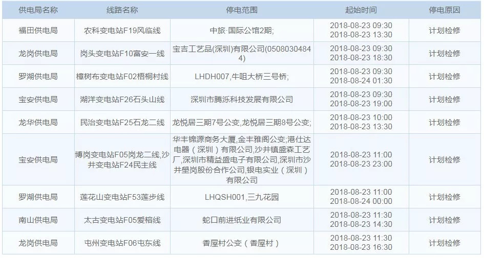 8月23日停電區(qū)域