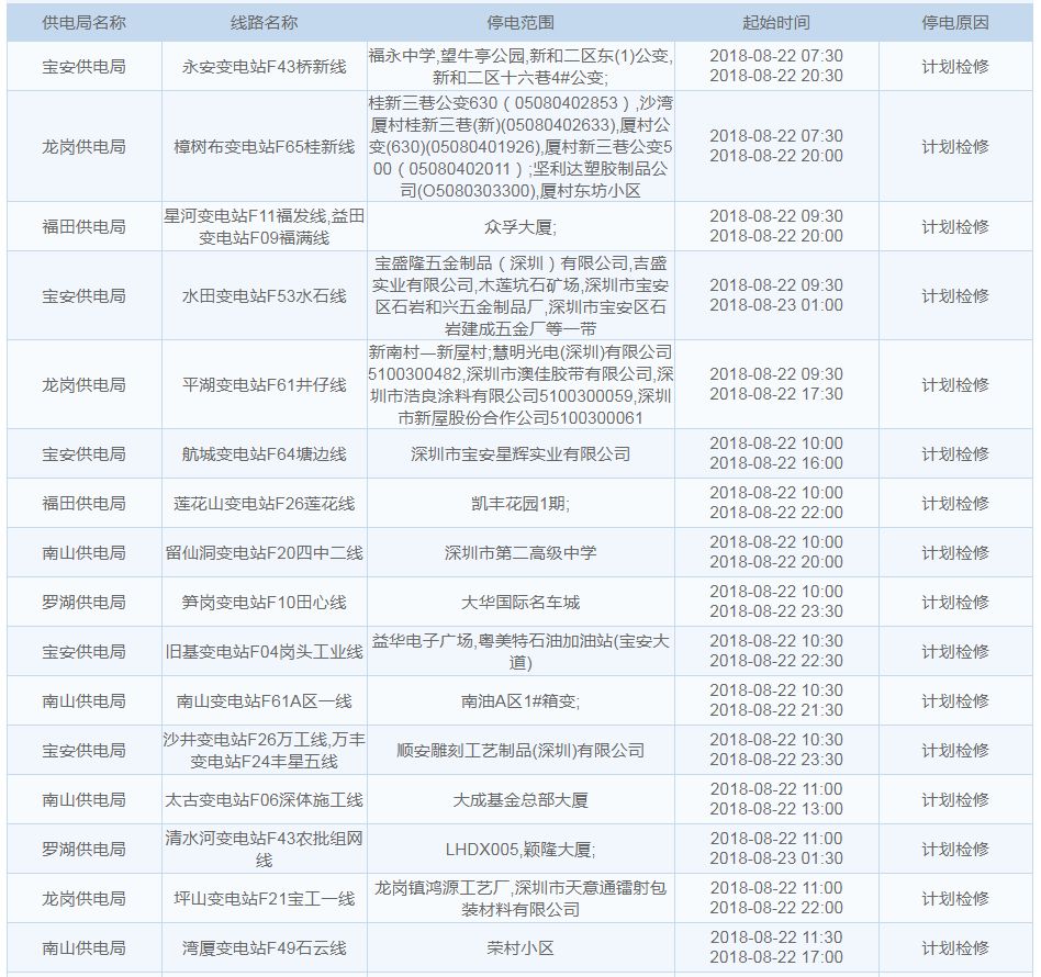 8月22日停電區(qū)域