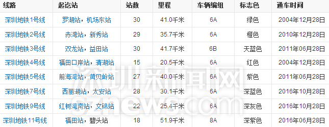 深圳地鐵目前正在運(yùn)營的線路信息↑?