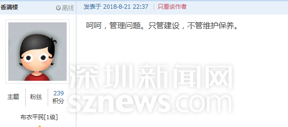 就此,網(wǎng)友“香滿樓”吐槽相關(guān)部門只管建設(shè),不管維護(hù)保養(yǎng)。網(wǎng)友“深圳西站”同時反映,深圳公共汽車站臺上,還有很多地鐵路線圖是二期版本。