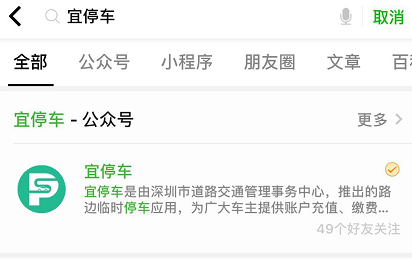 2、添加微信公眾號(hào)“宜停車”