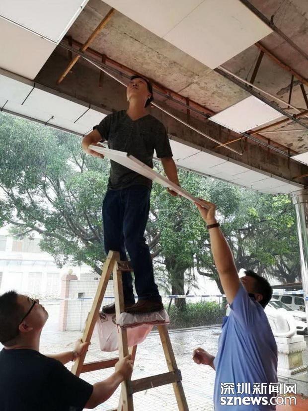 邊檢技術民警在搶修被強臺風破壞的現(xiàn)場設施