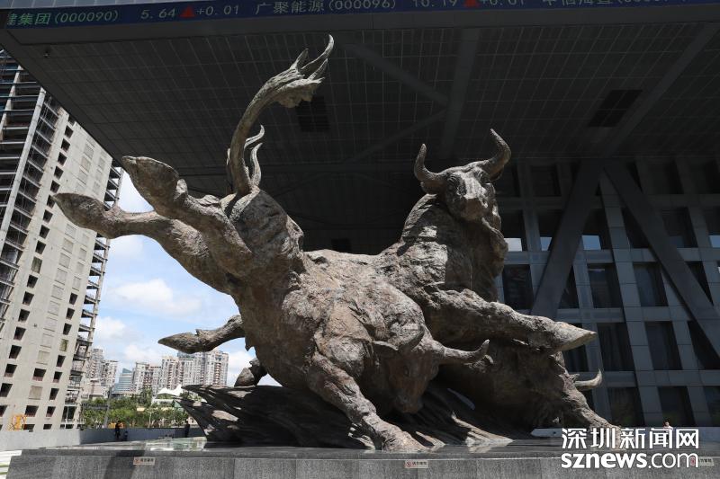 牛雕塑寓意深交所牛氣沖天。實(shí)際情況如何?18日中午記者趕往深交所,在廣場(chǎng)拍到了牛雕塑,一切如常。謠言不攻自破。