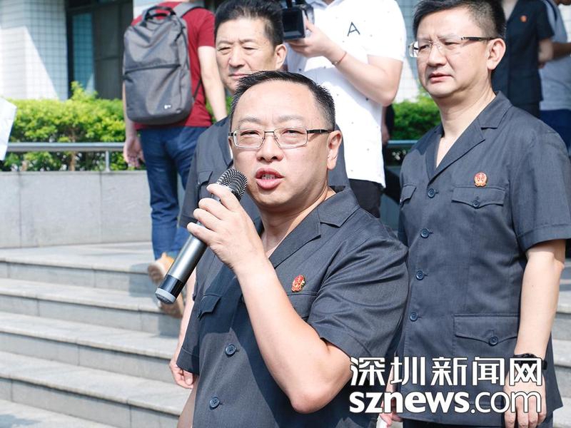 福田法院陳新哲院長(zhǎng)在執(zhí)行行動(dòng)開(kāi)始前做動(dòng)員講話