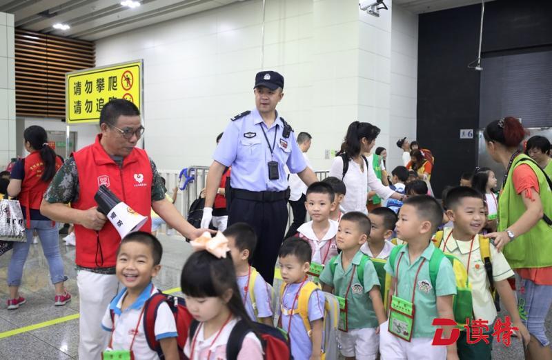 邊檢民警與深圳義工在福田口岸出境大廳悉心呵護跨境學童安全快捷通關(guān)。黃俊生攝