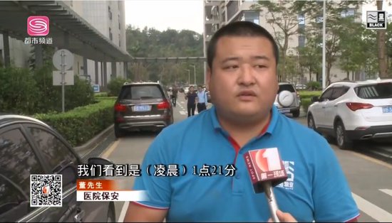 值班保安緊急通知了醫(yī)院警務(wù)室民警,并在差不多相同的時間趕到了事發(fā)病房了解情況,并第一時間查看病房監(jiān)控。在醫(yī)院樓下,記者見到了昨晚值班的保安之一董先生,他也證實(shí)了劉女士的說法。