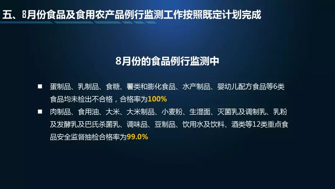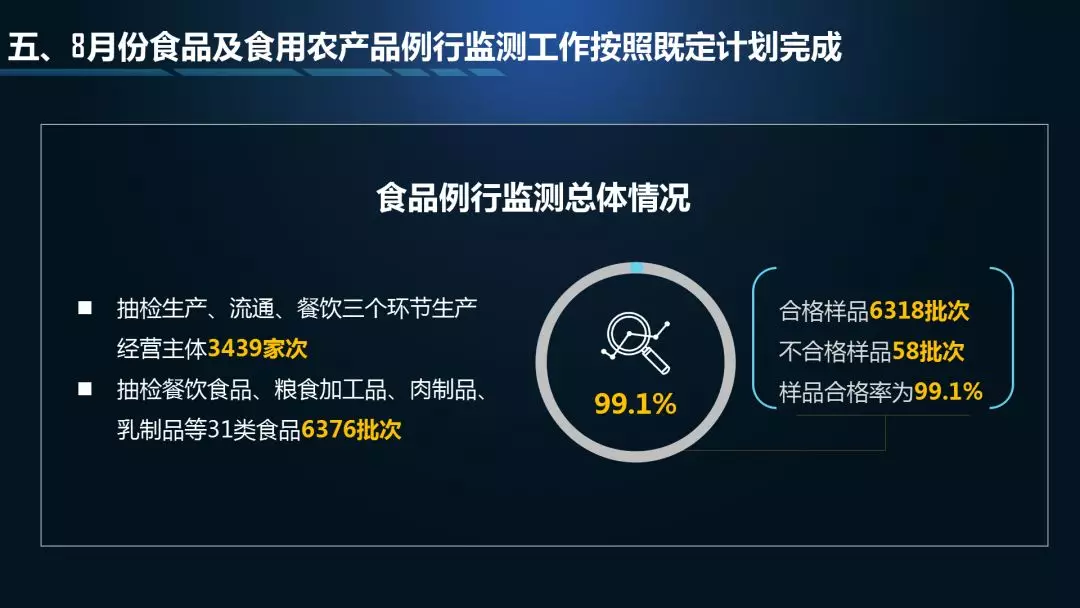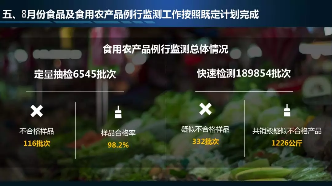 8月份食品及食用農(nóng)產(chǎn)品例行監(jiān)測工作按照既定計(jì)劃完成