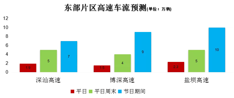 預(yù)計(jì)在假期前一天下午16時(shí)開(kāi)始,各高速離深車(chē)流量將會(huì)大幅增加,到下午22時(shí)一直處于高位運(yùn)行狀態(tài)。