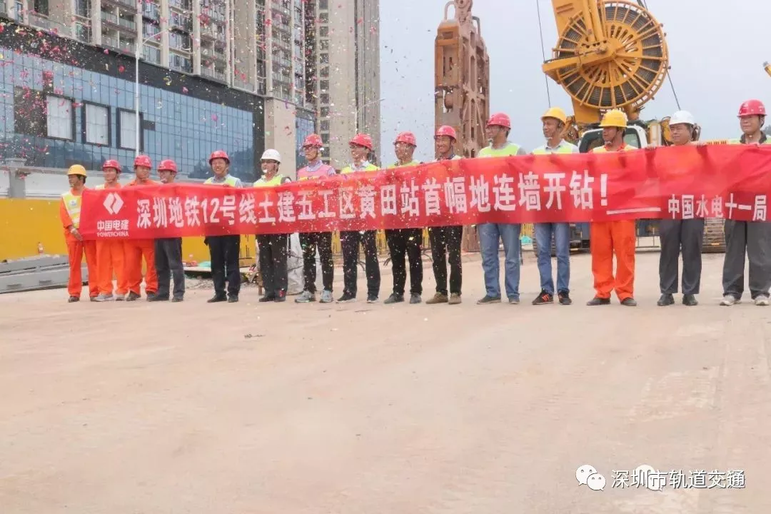 伴隨著旋挖鉆機(jī)的轟鳴聲,黃田站樁板墻首根灌注樁成功開(kāi)鉆,打響了深圳地鐵12號(hào)線土建五工區(qū)工程主體結(jié)構(gòu)施工大戰(zhàn)的第一槍?zhuān)瑯?biāo)志著該工程完成前期工程,正式拉開(kāi)了主體工程建設(shè)的帷幕。