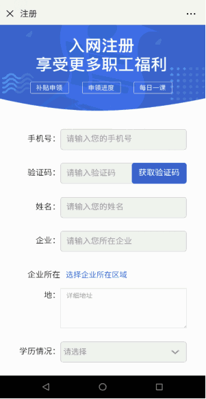 第二步:進(jìn)入注冊頁面,使用手機(jī)號及驗證碼注冊/登陸,選擇相應(yīng)的補貼(“提升學(xué)歷”或“提升技能”)項目;
