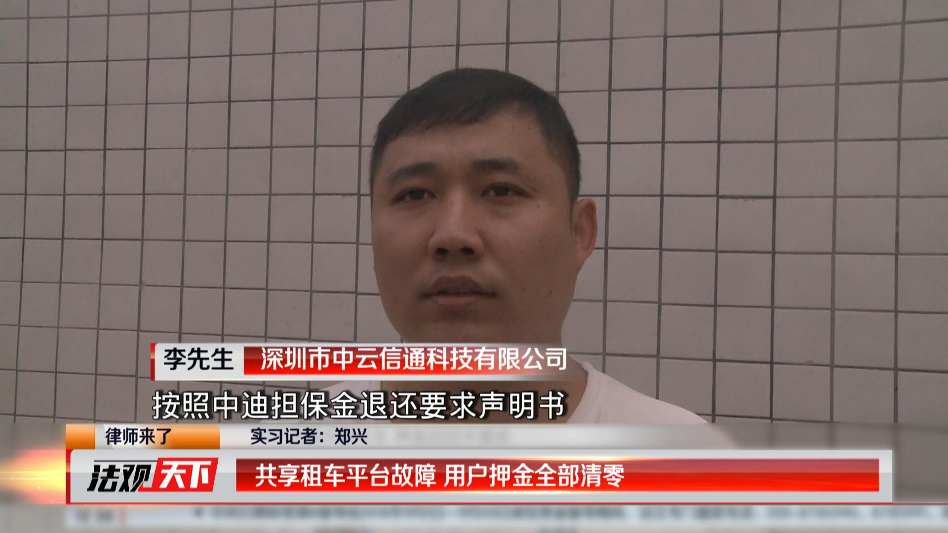 隨后,《法觀天下》嘉賓律師歐陽春陪同用戶一起來到了中迪用車所屬的公司,該公司名為深圳市中云信通科技有限公司,位于寶安區(qū)西鄉(xiāng)大道旁的滿京華現(xiàn)代西谷大廈3座11樓了解情況。進入公司后,中云信通科技有限公司代表李先生接待了我們,并且說明了APP使用不了和余額顯示為零的具體原因。
