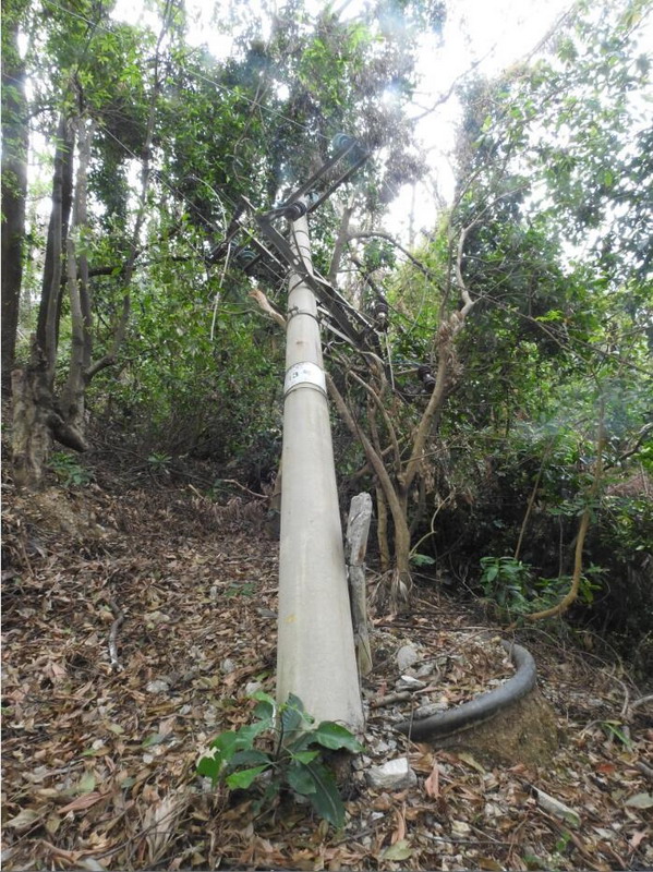 斜躺在樹叢中的電線桿 深圳論壇網友“szwtyh”攝