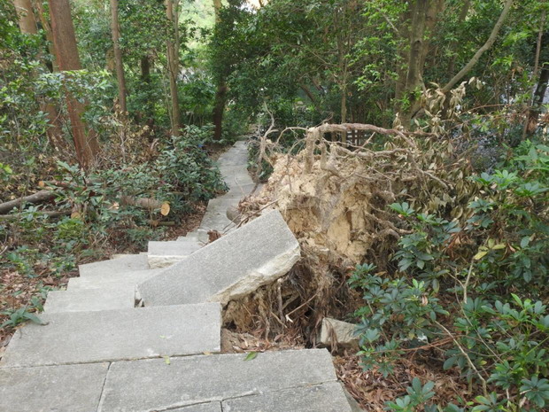 仙湖植物園內被“山竹”吹倒的電線桿 圖片來自深圳論壇網友“szwtyh”攝