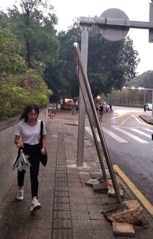 被“山竹”吹歪的交通路牌 深圳新聞網記者高暢韻攝