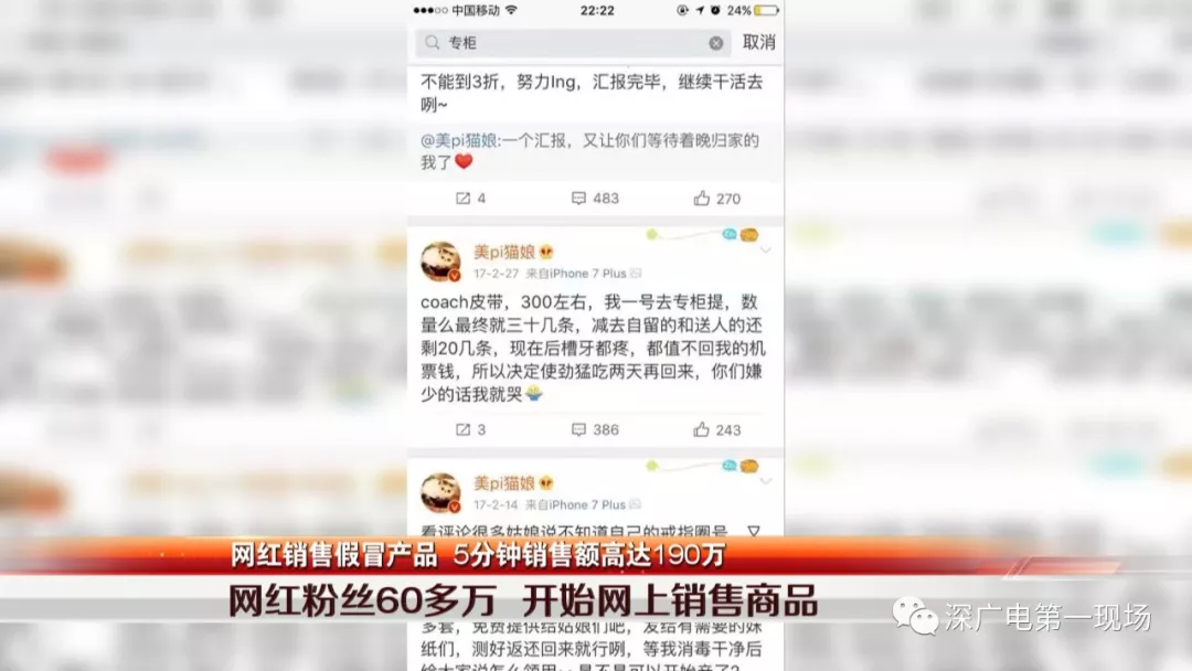 經(jīng)審訊,嫌疑人于某交代,她2013年注冊了@美Pi貓娘的微博賬號,開始做彩妝的分享和解答,2016年,已擁有近30萬粉絲的她來到深圳做網(wǎng)店,通過自己創(chuàng)立的深圳某珠寶公司做珠寶、彩妝。同時,還通過微博活動以及關(guān)愛小的動物的善舉吸引更多的人關(guān)注,共積累了62萬粉絲。