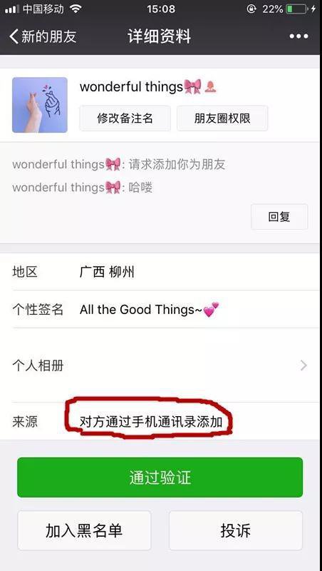 或者 " 通過手機(jī)通訊錄 " 添加的申請,實際上是騙子使用一種軟件,把經(jīng)地下渠道收集到的眾多手機(jī)號碼自動存入自己的手機(jī)通訊錄,然后由微信自動匹配發(fā)出好友申請,迷惑性極強(qiáng)。