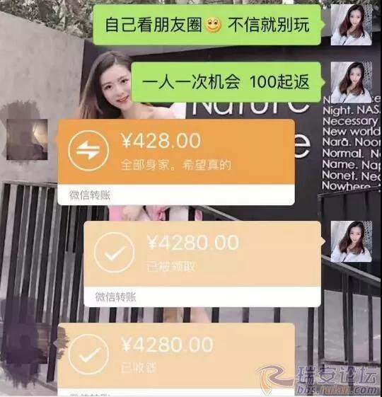 " 美女 " 們無一例外都有一個 " 富二代 " 男友,分個手動不動就甩來 30 萬、50 萬。而美女本身就是高富美,誰稀罕他的臭錢,只要轉(zhuǎn)賬并備注 " 馬少輝是人渣 " 就能收到十倍返還。當(dāng)然也可能是 " 王少輝 "、" 孫少輝 "…… 隨便一個名字而已。