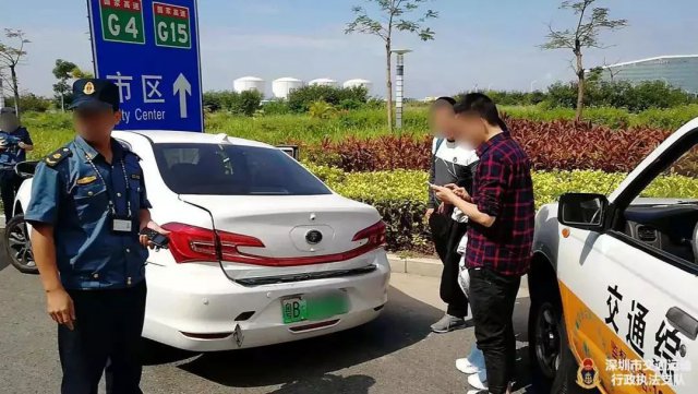 行動過程中,執(zhí)法人員在空港六道發(fā)現(xiàn)一輛車牌號為粵 BF*****的白色小轎車形跡可疑,于是上前準(zhǔn)備示意該車司機(jī)停車接受檢查,不料該車司機(jī)突然停車并迅速向后倒車試圖逃跑。
