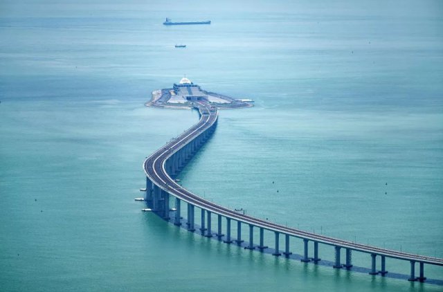 其中,粵港澳三地共同建設(shè)的主體工程長約29.6公里,由長達22.9公里的橋梁工程和6.7公里的海底沉管隧道組成,隧道兩端建有東、西兩個人工島,兩個人工島隔海相對,中間海浪翻飛,氣勢壯闊。