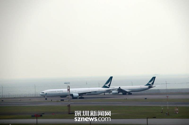 打開(kāi)右手邊車(chē)窗,就可以看到香港機(jī)場(chǎng)的停機(jī)坪
