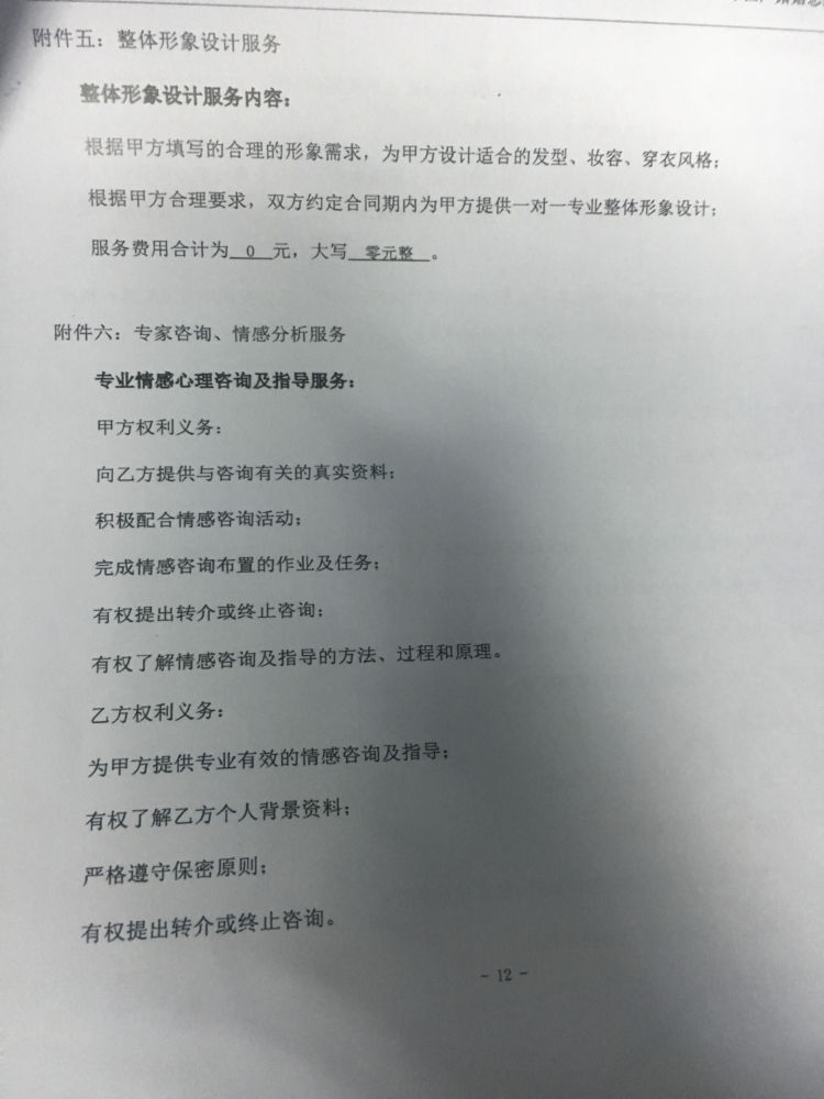8位里面見了5位,還沒有找到適合的,劉小姐開始著急。她向紅娘咨詢,紅娘認(rèn)為是劉小姐的形象不好,并建議她做價(jià)值3萬塊錢的個人形象設(shè)計(jì)。“我以為合同里面的整體形象設(shè)計(jì)服務(wù)就是包含現(xiàn)在所需要的形象設(shè)計(jì),不然我會花將近5萬元去見幾個男的?”劉小姐認(rèn)為紅娘故意誤導(dǎo),并直言她形象不好,對她打擊很大,所謂的個人形象設(shè)計(jì),是引誘她變相增加消費(fèi)。
