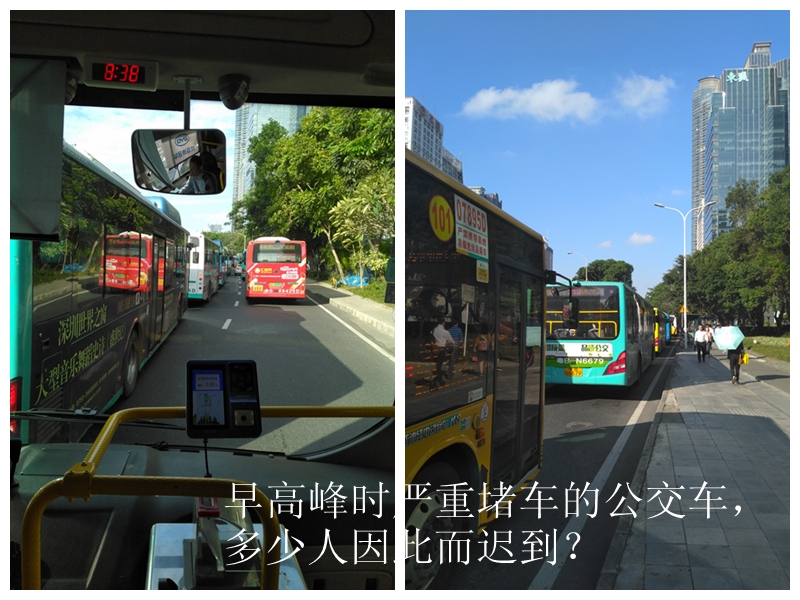 一邊是擁堵不堪的狹小道路,一邊是長年閑置的車道,網(wǎng)友在公交車上看著旁邊空空如也的馬路,手表走過該打卡的點,他又遲到了。