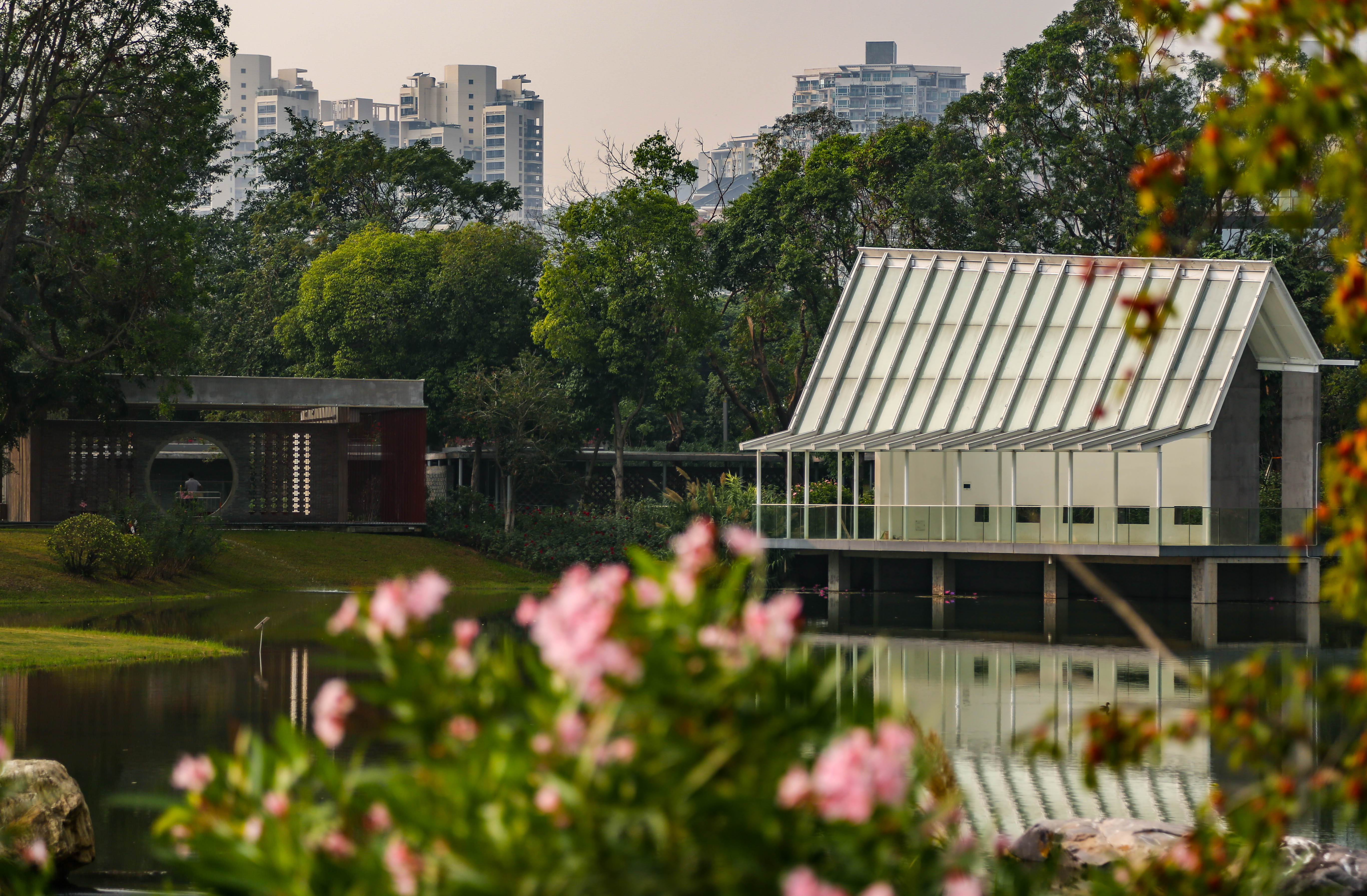 11月12日,深圳新聞網記者來到香蜜公園西門探營即將開放的婚姻登記中心。記者在現(xiàn)場看到,婚禮堂選址于香蜜公園內近西入口被玫瑰花海包圍,被碧波環(huán)抱,占地近4000平方米。