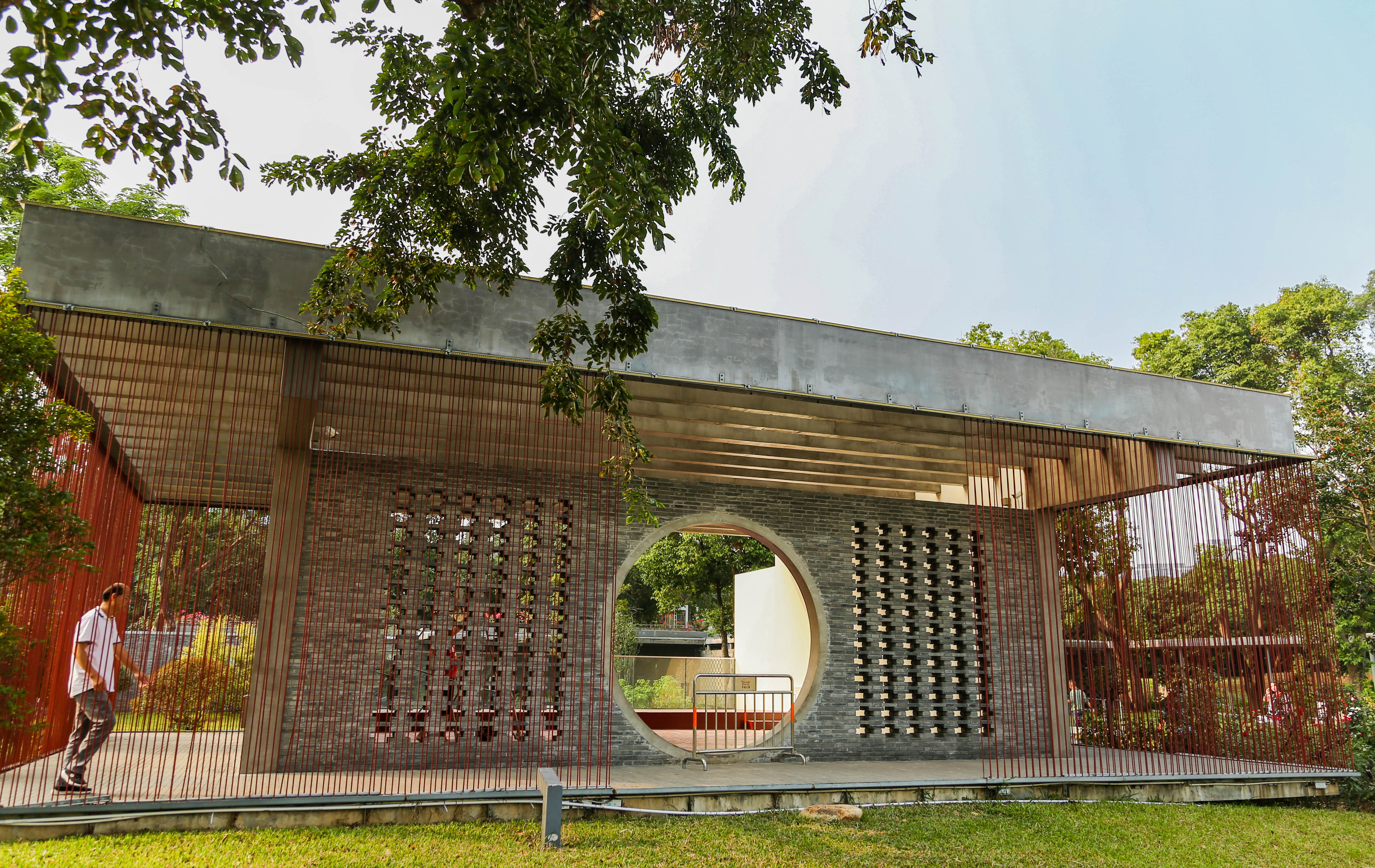 記者看到,目前西式婚禮堂和中式禮堂正在進行最后的裝修和布置。西式禮堂潔白寧靜,象征著純美的愛情。中式堂采用傳統(tǒng)的中軸對稱布局,軸線串聯(lián)內院、建筑和湖面,外面拉了兩層紅色的鋼筋繩子,讓人聯(lián)想起“千里姻緣一線牽”。