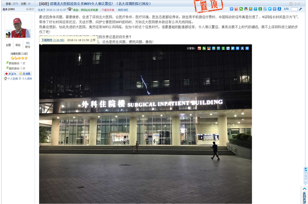 深圳新聞網(wǎng)11月20日訊(記者 劉婷)“北大深圳醫(yī)院竟然沒(méi)有公共WiFi?令人難以置信!”近日有網(wǎng)友“老木子001”在深圳論壇發(fā)帖稱,使用手機(jī)微信付費(fèi)時(shí),發(fā)現(xiàn)北大深圳醫(yī)院居然沒(méi)有公共無(wú)線網(wǎng)絡(luò)。(網(wǎng)帖地址:https://szbbs.sznews.com/thread-3821767-1-1.html)。