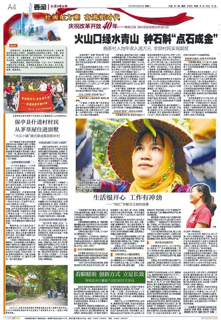 8月28日,《深圳特區(qū)報》推出了“壯闊東方潮奮進(jìn)新時代”慶祝改革開放40年——《海南日報》《深圳特區(qū)報》聯(lián)合采訪行動首期報道。首期報道通過通訊、評論等形式,以點帶面,展示了海南全力打贏脫貧攻堅戰(zhàn)取得的成就。