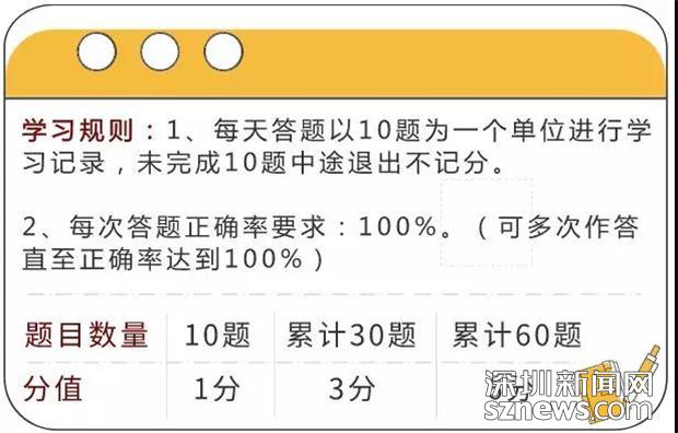 值得注意的是,申請(qǐng)減分學(xué)習(xí)的駕駛必須符合駕駛證準(zhǔn)駕車(chē)型為C1、C2、C3,車(chē)輛所屬地和違法發(fā)生地均為深圳,累計(jì)記分≤9分(一次性記滿12分,或已經(jīng)累計(jì)達(dá)到12分的駕駛?cè)顺猓┑臈l件,符合這些條件的即可進(jìn)入“深圳交警星級(jí)用戶——微課堂——消分學(xué)習(xí)——答題攢分”進(jìn)行減分學(xué)習(xí)。每天答題以10題為一個(gè)單位進(jìn)行學(xué)習(xí)記錄,未完成10題中途退出不記分,每次答題正確率要求為100%,即答對(duì)10題可獲得1分,累計(jì)答對(duì)30題可獲得3分,累計(jì)答對(duì)60題可獲得6分。