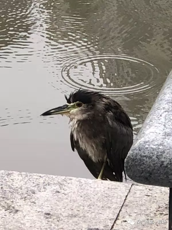 公園的保安發(fā)現(xiàn)后,馬上致電深圳市野生動(dòng)物保護(hù)協(xié)會(huì),工作人員許先生到場(chǎng)后,把這只夜鷺解救上岸。