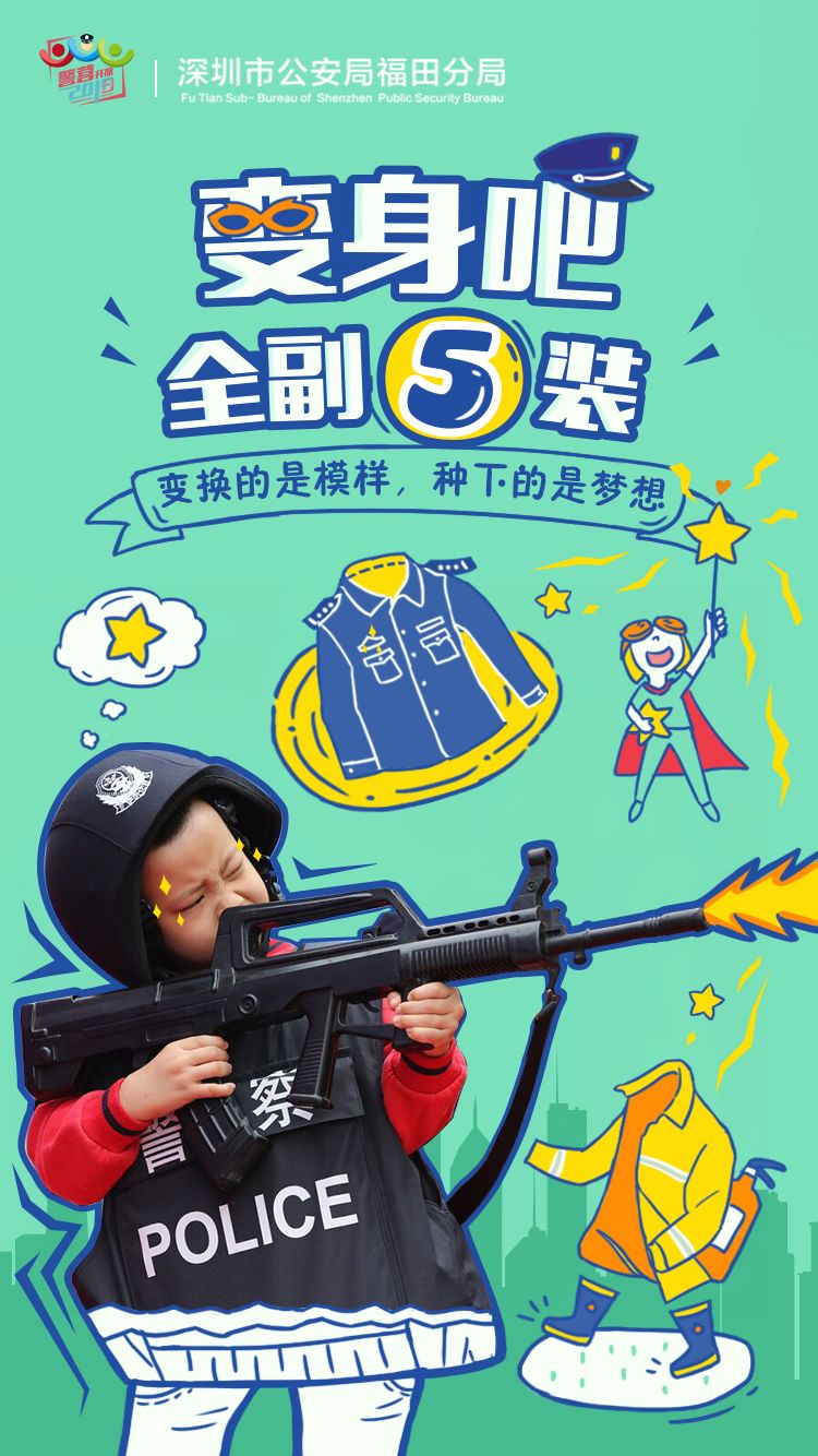 福田警方從11月26日開始,連續(xù)推出開放日倒計(jì)時(shí)5期主題海報(bào):“變身吧,全副‘5’裝”、“趣玩吧,‘四’意嬉戲”、“學(xué)習(xí)吧,舉一反‘3’”、“見面吧,為你‘2’來(lái)”、“一起吧,‘1’起警彩”,向市民發(fā)出邀請(qǐng)函,通過官方微信、微博等新媒體平臺(tái)發(fā)布,搶先看精彩。