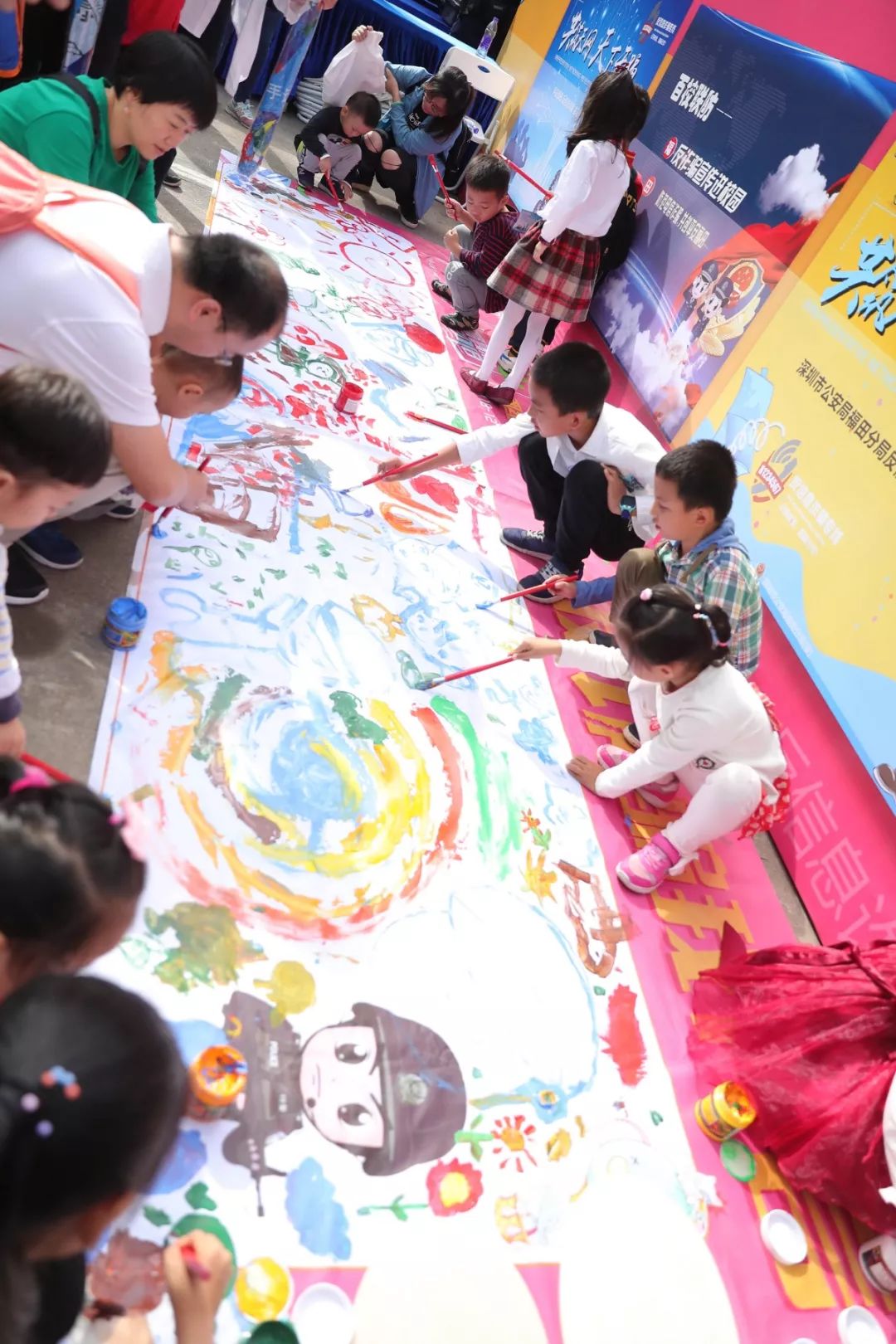 最具童年味道和勃勃生機(jī),大人和小孩現(xiàn)場(chǎng)涂鴉,寫出對(duì)警察想說(shuō)的話,也可以在畫架畫板上畫出自己心目中的警察,在孩子心中種下警察的種子,滿滿的寄語(yǔ),是對(duì)福田警察的祝福和期待,這也是警察蜀黍肩膀上沉甸甸的責(zé)任和勇往直前的力量!