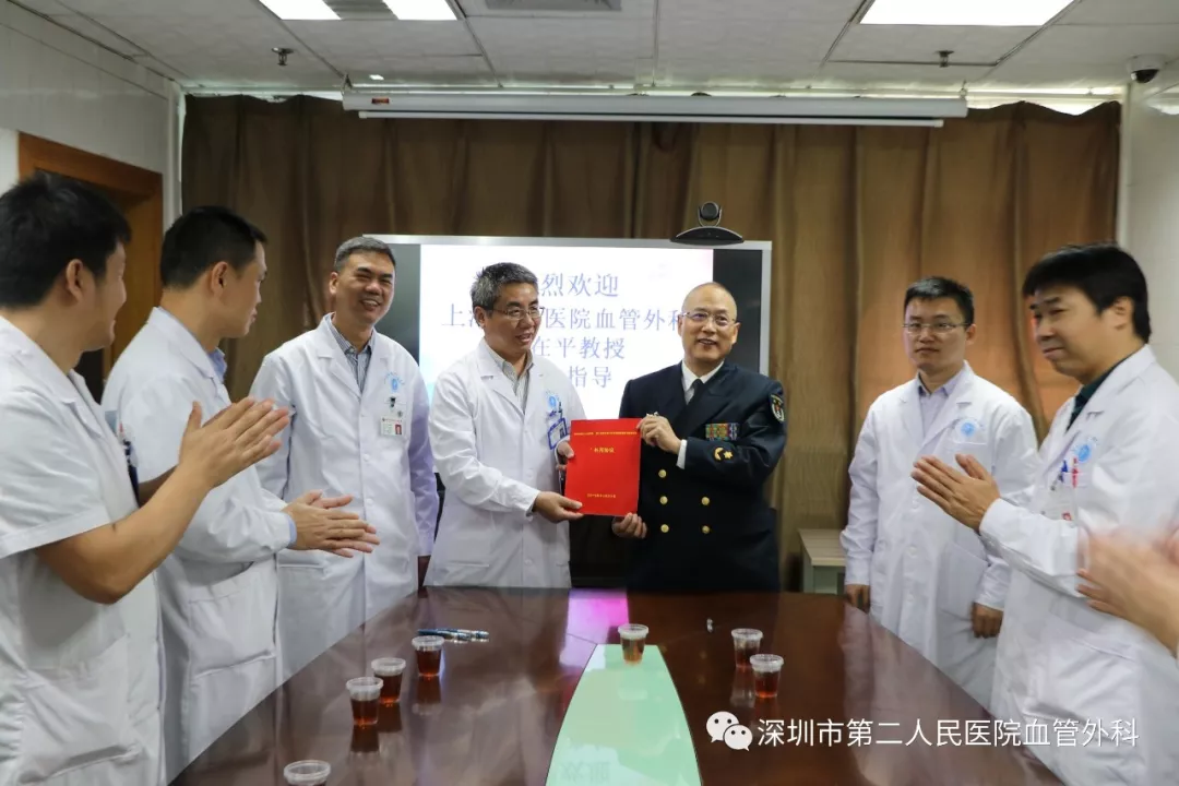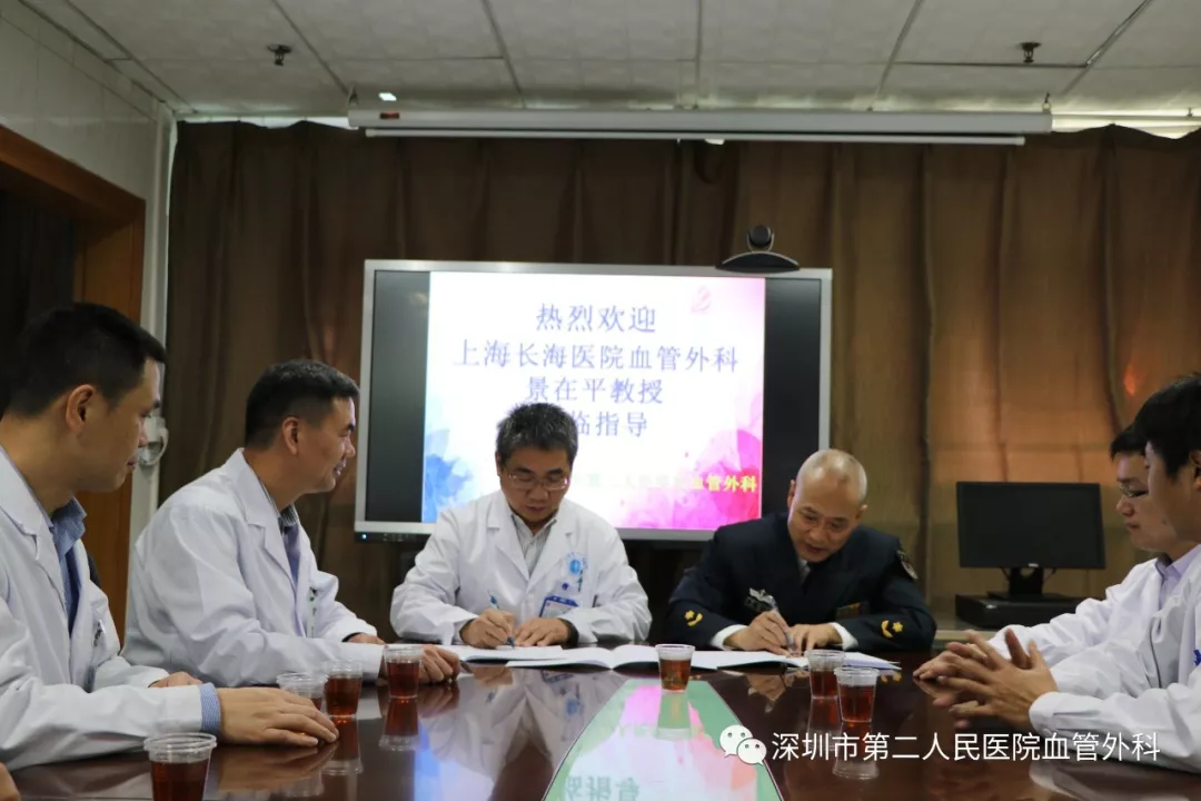 2018年11月30日,中國人民解放軍海軍軍醫(yī)大學(xué)附屬長海醫(yī)院血管外科、心臟瓣膜疾病微創(chuàng)診治中心主任,上海市血管系統(tǒng)疾病臨床醫(yī)學(xué)中心主任,全軍血管外科研究所所長,中國醫(yī)師協(xié)會(huì)腔內(nèi)血管學(xué)分會(huì)(二級)主任委員,國際知名血管外科專家景在平教授,來到深圳市第二人民醫(yī)院(深圳大學(xué)第一附屬醫(yī)院)(以下簡稱“我院”)進(jìn)行座談、臨床查房、會(huì)診以及向全市住院醫(yī)師規(guī)培學(xué)員、教師與基地管理人員進(jìn)行專題學(xué)術(shù)講座。