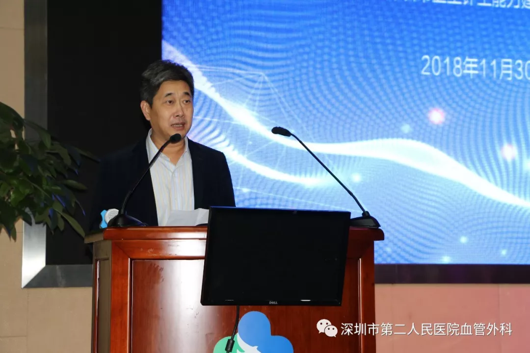 2018年11月30日,中國人民解放軍海軍軍醫(yī)大學附屬長海醫(yī)院血管外科、心臟瓣膜疾病微創(chuàng)診治中心主任,上海市血管系統(tǒng)疾病臨床醫(yī)學中心主任,全軍血管外科研究所所長,中國醫(yī)師協(xié)會腔內血管學分會(二級)主任委員,國際知名血管外科專家景在平教授,來到深圳市第二人民醫(yī)院(深圳大學第一附屬醫(yī)院)(以下簡稱“我院”)進行座談、臨床查房、會診以及向全市住院醫(yī)師規(guī)培學員、教師與基地管理人員進行專題學術講座。