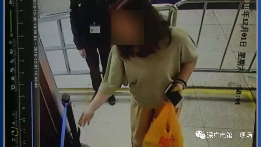 監(jiān)控顯示,肖女士身后有一名身穿駝色上衣的女子,在通過(guò)安檢之后,把自己的黑色背包拿走之后,并沒有立刻離開,而是站在肖女士藍(lán)色挎包旁,等待了10秒左右的時(shí)間,隨后就拿走了藍(lán)色挎包。